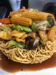 I love this place! Their menu has a whole vegetarian section. And the flavors are popping. The vegetarian was really good, I highly recommend it. My friend got a chicken dish number 71 on the menu and she recommends that too. She said the chicken melted in her mouth.